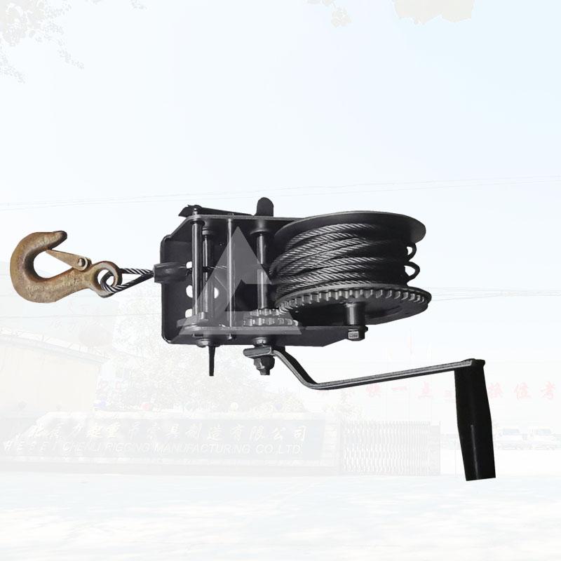 一般下水道、礦井這樣的環境空間比較小,人們不能使用大型的機械進行工作,這個時候可以選擇牽引工具手動絞盤和救援三腳架配合來完成工作。可以先把礦用手搖絞車安裝到救援三角架上,然后工人穿上防墜器,佩戴好后,通過上面工人不斷的搖動手動絞車的手柄,來慢慢的下降,使得進入井下工作的工人,能夠平安的降落到井下。起重搬運機械廠家撼馬為滿足不同客戶的需求,生產了各種型號的手搖絞盤,方便客戶使用。